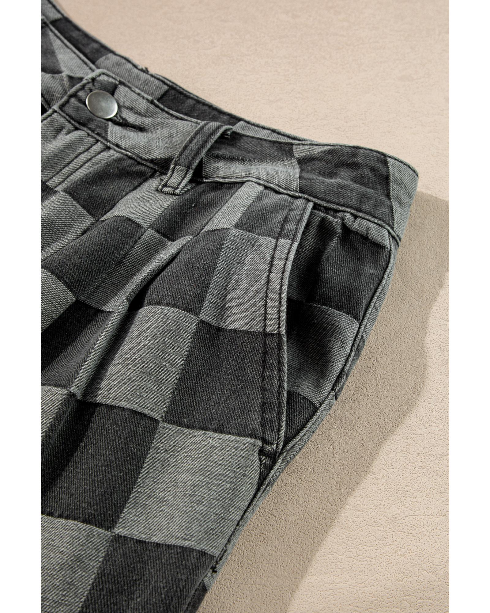 Dark Grey Checkered Denim Wide Leg Jeans - 4 US